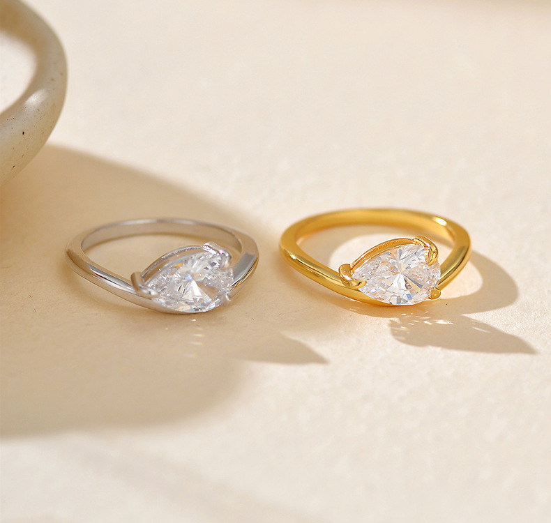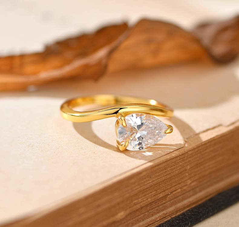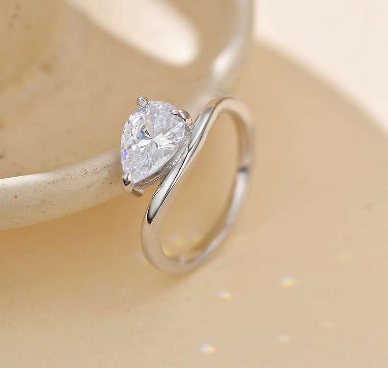 New S925 Sterling Silver Drop-shaped Zircon Ring Wavy