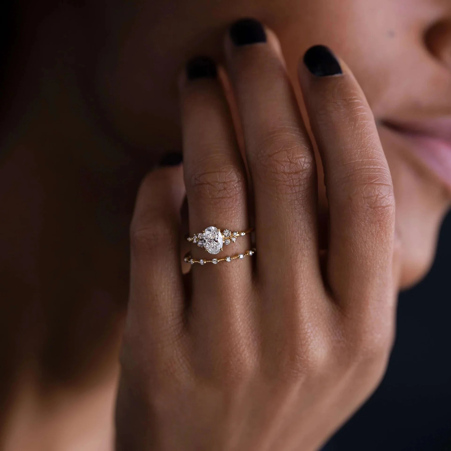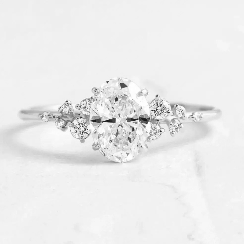 S925 Sterling Silver Egg-shaped Zircon Bright Starry Sky Ring