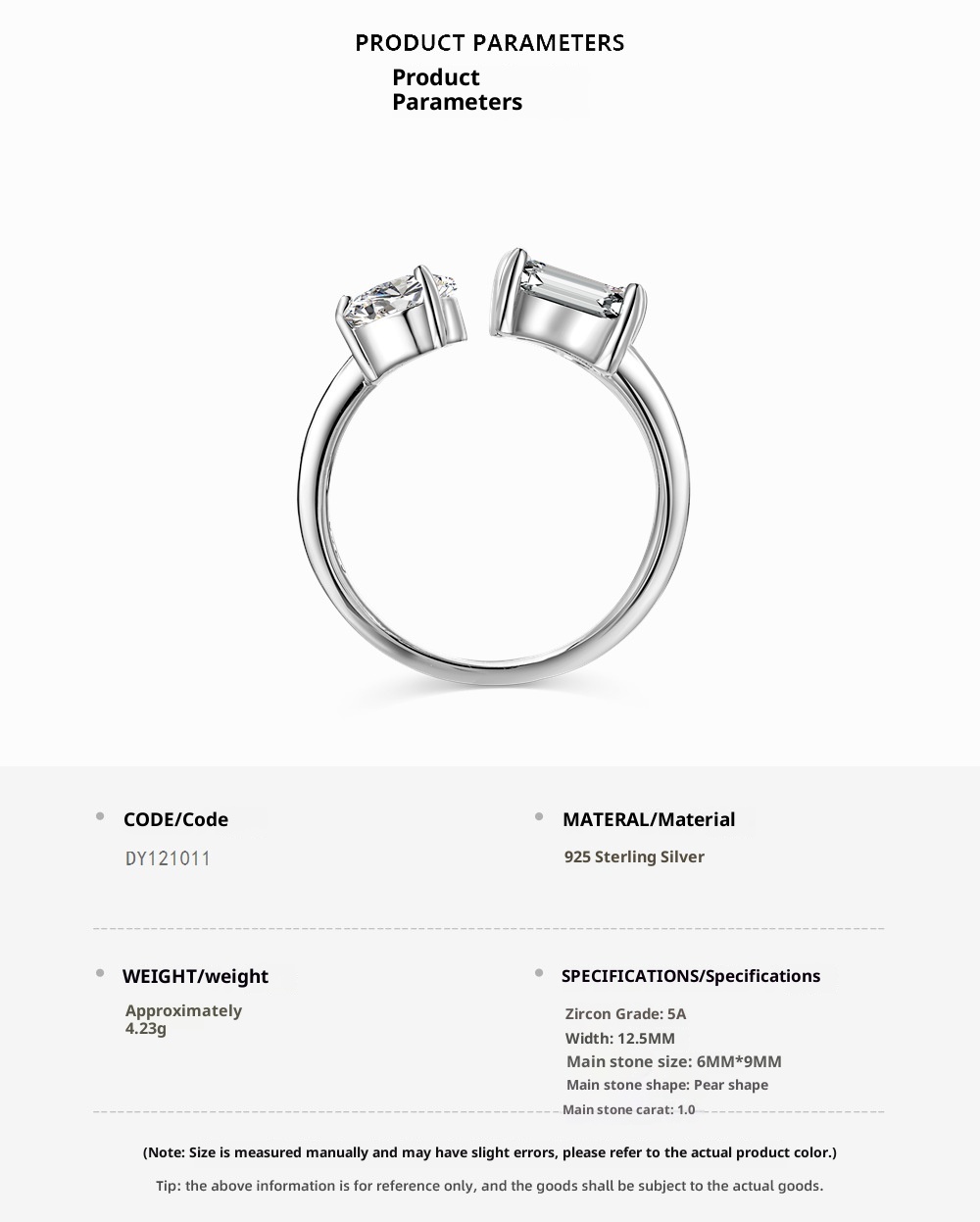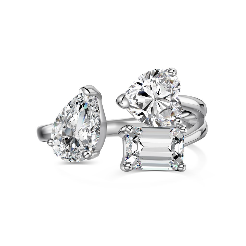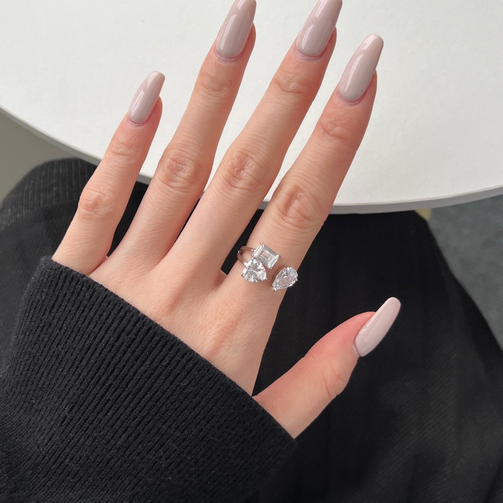S925 Sterling Silver Ring Women's Fashion Inlaid Pear-shaped Heart-shaped Zircon